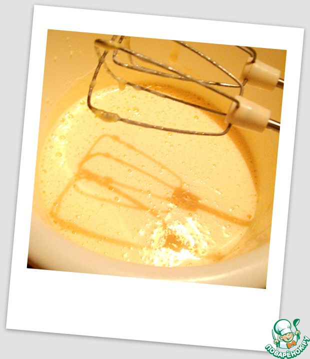Взбиваем на малых оборотах миксером охлажденные белки до загустения, потом добавляем к ним желтки и постепенно - сахарную пудру.