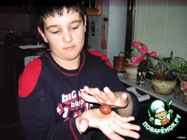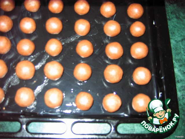 Сформируйте из теста шарики диаметром 2,5-3,0 см. Если не получается, добавьте немного сливочного масла. Порцию теста, из которого формируете шарик, сначала сильно сжимайте в кулаке, а затем катайте между ладонями.