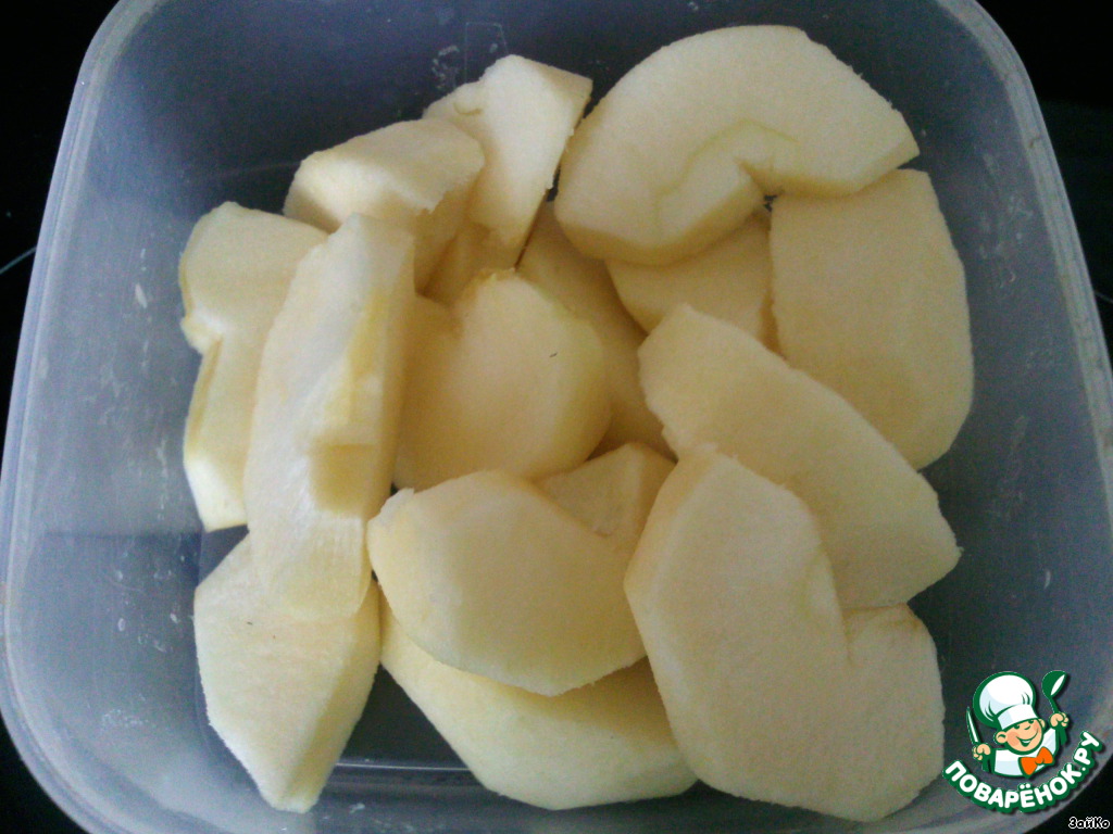 Пока тесто в холодильнике,яблоки очистите от кожуры и сердцевины.Каждое яблоко разрежьте на 8 частей.