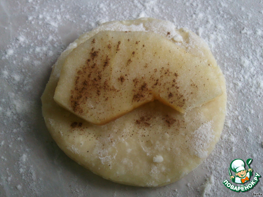 На кружочек положите яблоко, присыпьте корицей.