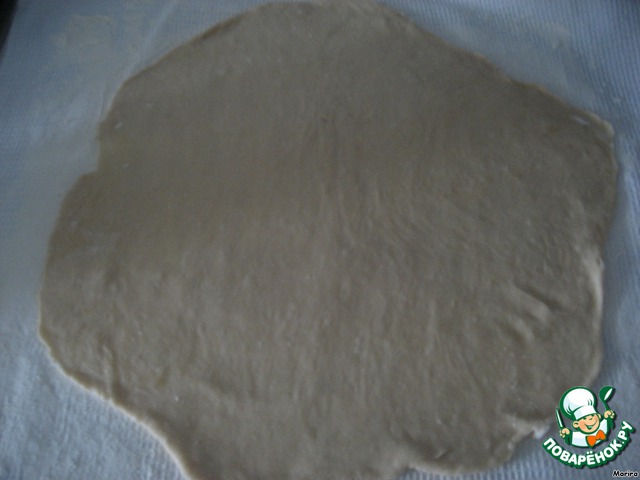 Хлопчатобумажное полотенце присыпать мукой и раскатать на нем тесто.