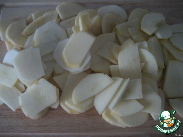 Нарезаем яблоки тонкими дольками и сбрызгиваем лимонным соком.
