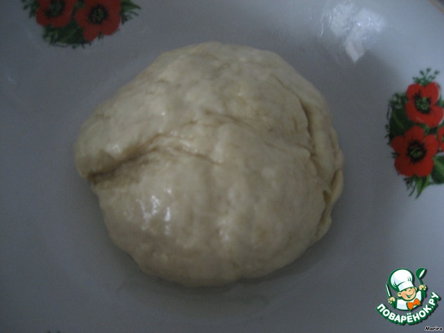Замешиваем тесто из воды, муки, одного яйца и 1 ст.л. растительного масла. Делим тесто на две части, в одну половину добавляем еще одну ложку растительного масла, вымешиваем и соединяем с другой половинкой. Кладем тесто в миску поливаем оставшимся маслом и оставляем на 30 минут.