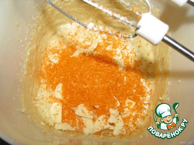 И кокосовую стружку, половинку пакетика. У меня она оранжевая, но цвет не имеет никакого значения.