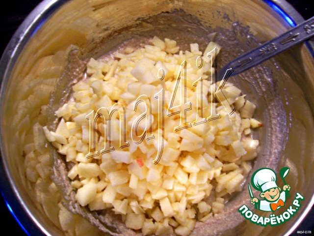 Яблоко очистить, удалить серединку и порезать на мелкие квадратики.