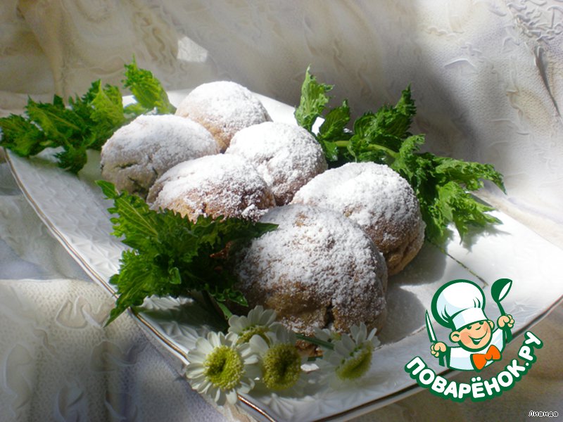 Выпекайте в духовке 30-35 минут при температуре 180* до золотистого цвета. Сверху, еще горячее печенье, присыпьте сахарной пудрой.