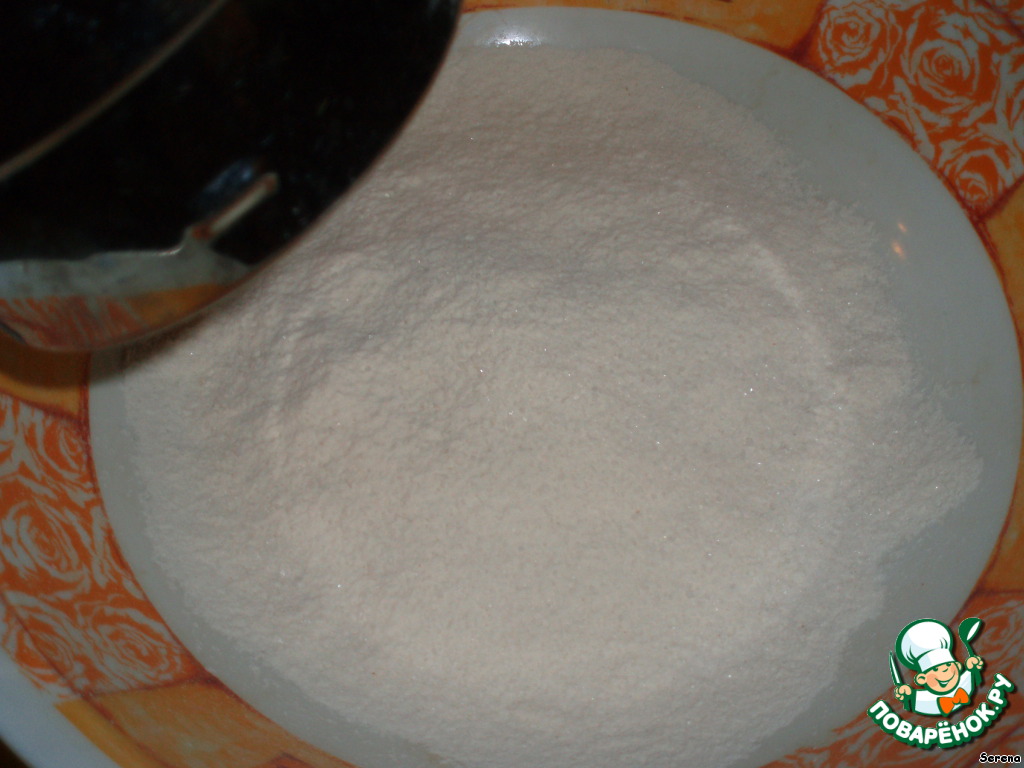 Одну треть сахара (в моем случае 30г) просеять с мукой два раза.