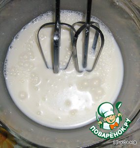 Взбейте сахар, ванильный сахар со сливками до образования пены.