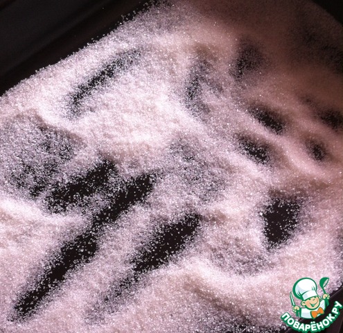 Оставшийся сахар высыпаем на противень и отправляем на 3-5 минут в духовку, разогретую до 200 градусов.