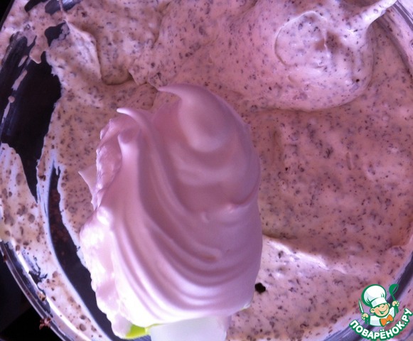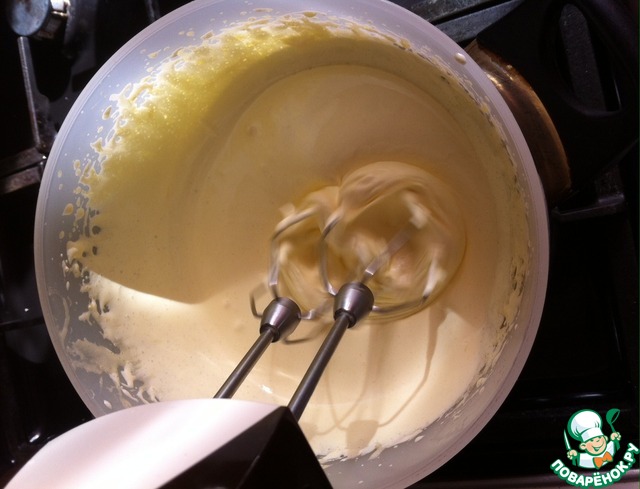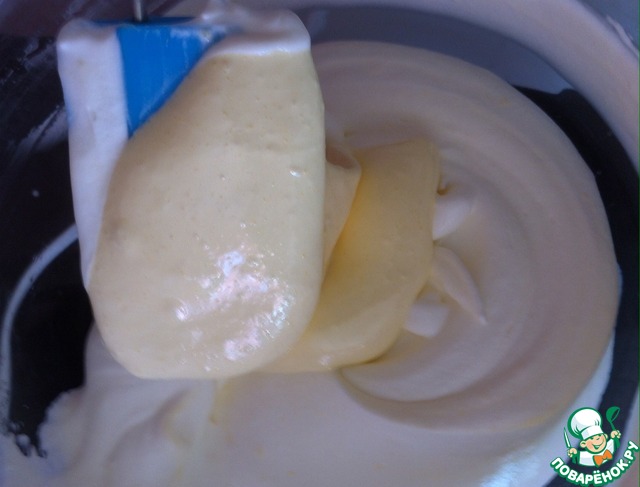 Взбиваем сливки до пиков, затем добавляем в них желтковую смесь.
