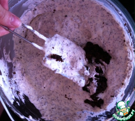 Затем шоколад и чернослив. Чернослив расходится плохо, поэтому аккуратно растираем его о стенки миски.