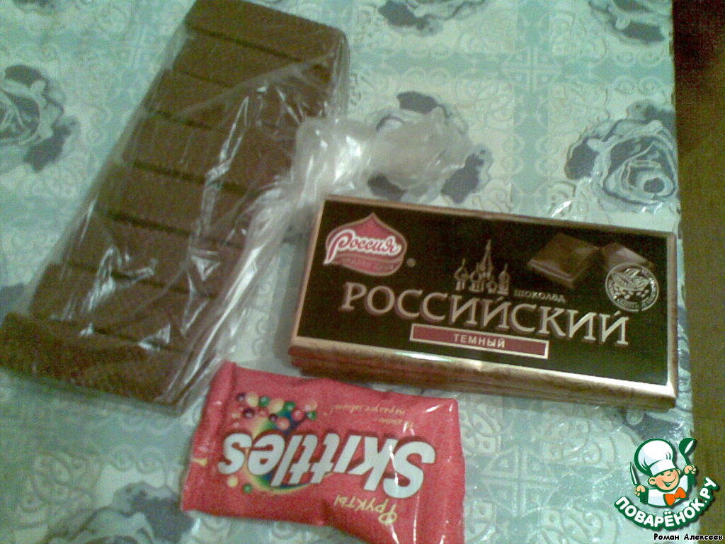 | Моя девушка очень любит темный шоколад, но мне показалось банальным просто шоколадку ей купить... Вот что из этого получилось... |
