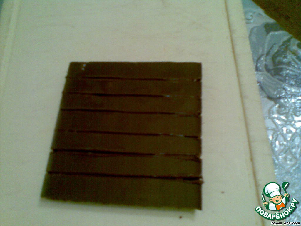 Раскаленным ножом делаем прорези в двух половинках шоколадки