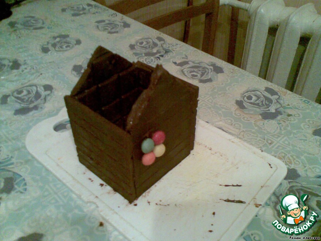 Пристраиваем крышу из вафель, ставим трубу и - вуаля!