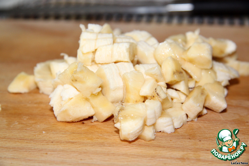 Банан порежем мелкими кубиками.