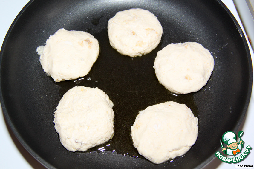 Выложим наши сырники на сковороду. Приготовим.