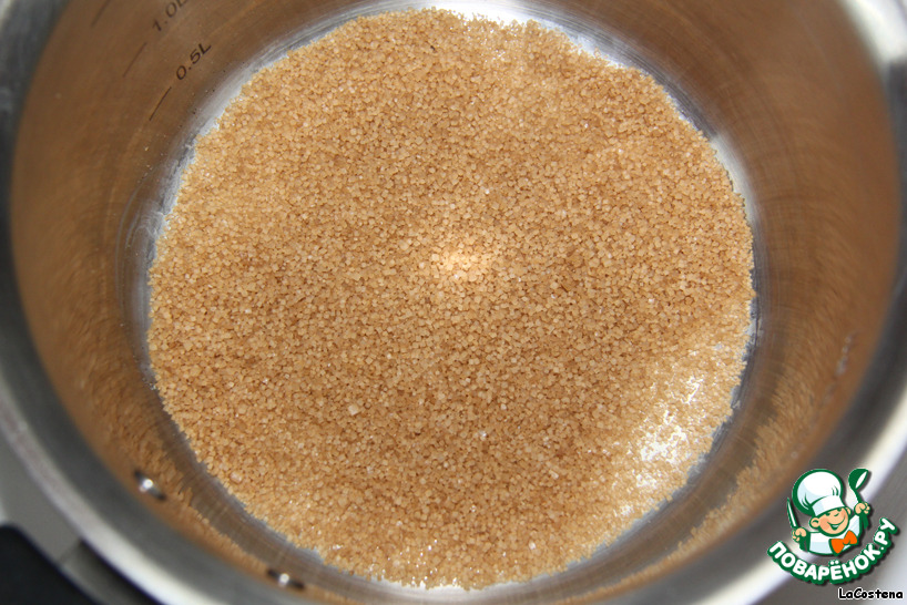 В сотейник высыпаем коричневый сахар (50гр.).