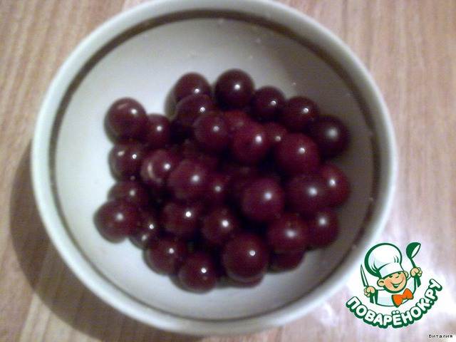 Вишню разморозить, вынуть из нее косточки, смешать с сахаром.