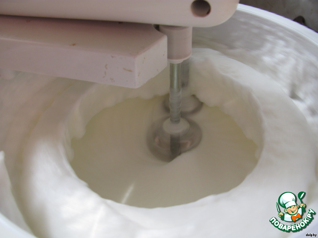 Аккуратно соедините (ложкой) взбитые белки с сухими ингредиентами.