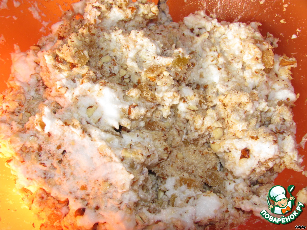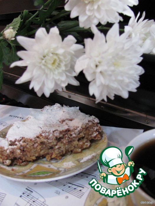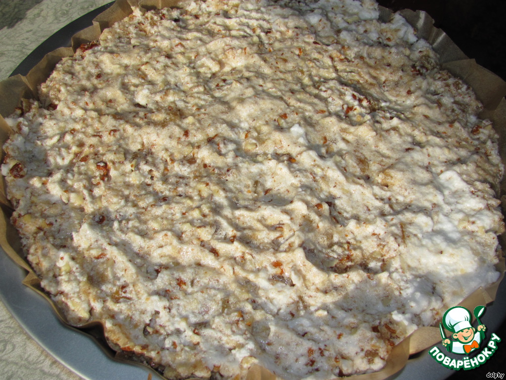 | Вяленые персики, миндаль и взбитые белки - торт получается очень интересным и вкусным. |