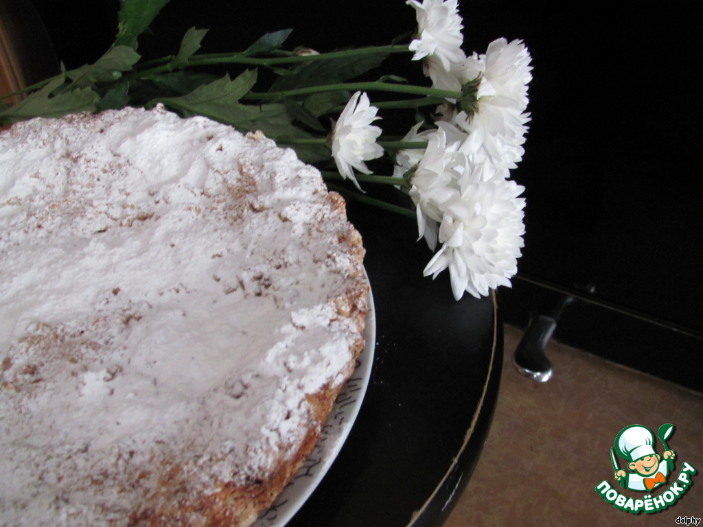 Остывший торт переложите на блюдо, посыпьте сахарной пудрой.