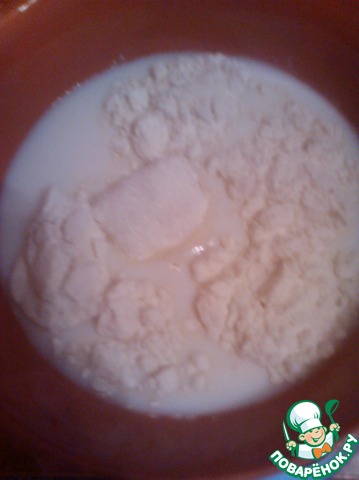 (Но лучше во избежании комков муки муку смешать с сахаром и медленно влить молоко.