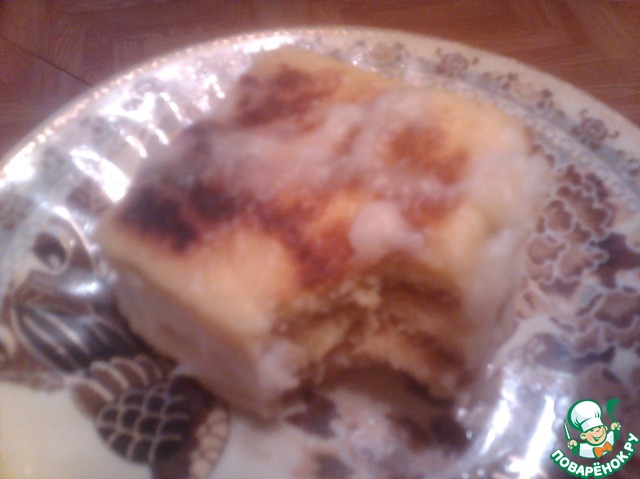 Можно для лучшей пропитки бисквитов кремом вначале окунуть печенье в молоко (дополнительное) на несколько секунд, вынуть и смазать кремом.