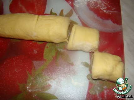 13.Тесто разделить на 3 части (чтобы удобнее было раскатывать).