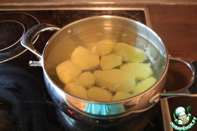 Отварить картофель (у меня был очень мелкий, поэтому 12 шт.)