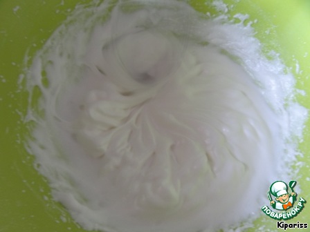 Белки с солью взбить в густую пену.