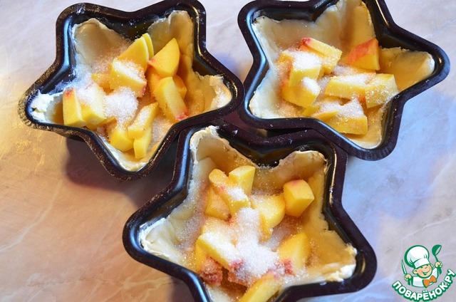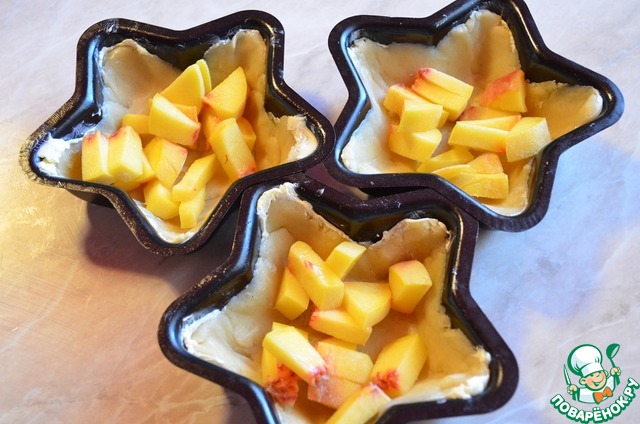Персик порезать небольшими кубиками и выложить в формы