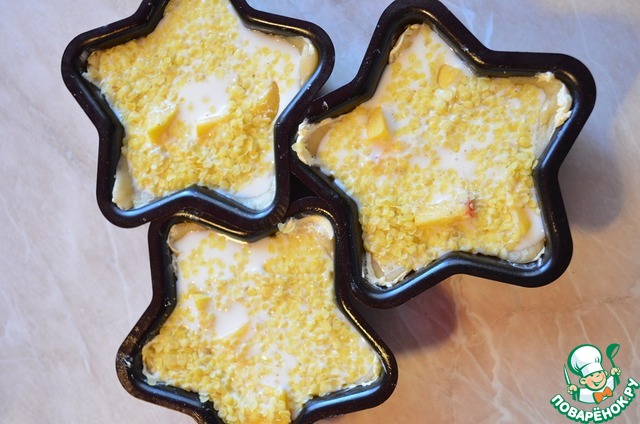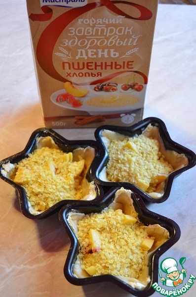 Далее добавить в формы пшенные хлопья не требующие варки от ТМ "Мистраль" по 2 столовых ложки с горкой