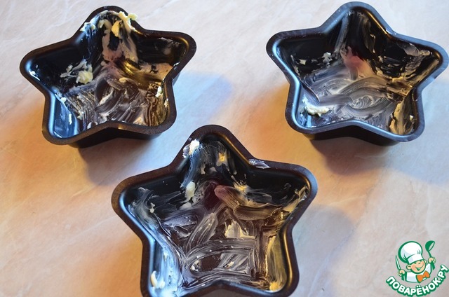 Формы для выпечки обильно смазать сливочным маслом, у меня металличесике формы-звезды, можно использовать силиконовые, тогда их смазывать маслом не нужно.
