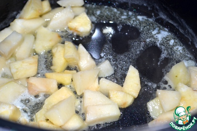 Обжариваем грушу, периодически помешивая (5 мин)