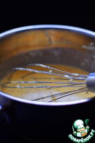 Заварить желтковую массу горячими сливками, вливая тонкой струйкой через сито.