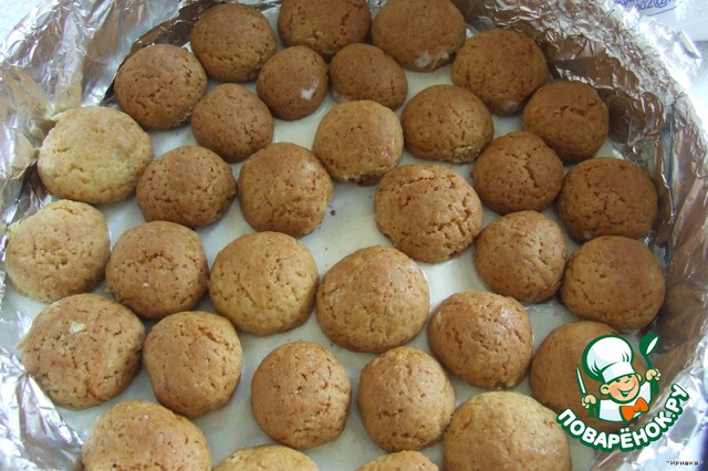 Из теста нужно скатать шарики величиной с грецкий орех внутрь каждого шарика кладем изюм или грецкий орех. Я всегда делаю один противень с орехом, а другой с изюмом. Шарики выкладываем на смазанный противень и выпекаем в предварительно разогретой духовке до золотистого теста.