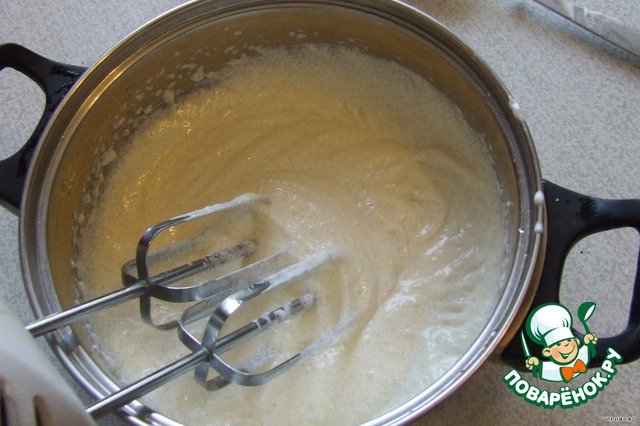 Приготовление крема: Сметану с сахаром взбить до однородной пышной массы.