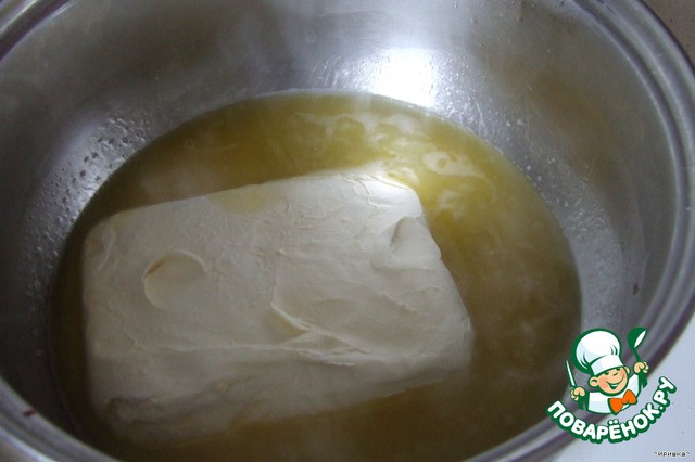 В миску кладем мед и добавляем сахар. Ставим на плиту или на паровую баню, сахар и мед должен растопиться.