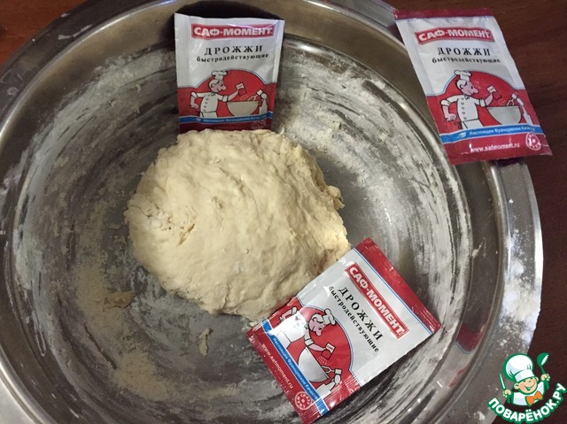 Готовим опару: Смешать дрожжи САФ- МОМЕНТ с сахаром, залить теплым молоком, добавить муку. Получится колобок, но не забитый, по ощущениям контролируйте досып муки. Поставить в теплое место на 2-2,5 часа. Опара готова, если поднявшись начнет оседать