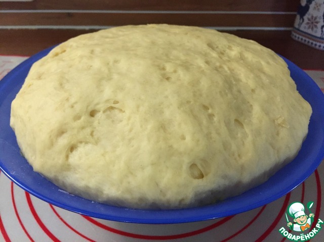 После расстойки смазываем пирог 1 яйцо + молоко, отправляем в духовку 190 гр на 30 мин.