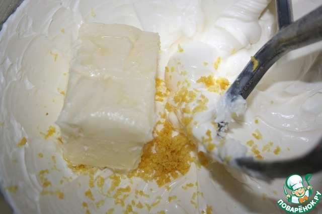 2. Добавьте сливочное масло и 1 ст. л цедры - взбейте до однородности.