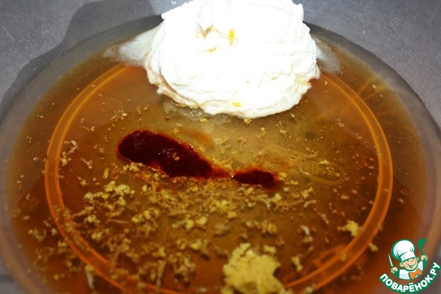 5. Соедините 2/3 стак мёда, рикотту, масло, 2 ст. л. цедры и ваниль, взбить до однородности.