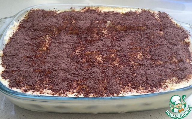 Вот и все! Теперь самое трудоемкое... Ждать! Минимум часов 6. Я делаю тирамису с вечера и на завтрак остается только посыпать весь тирамису какао! Приятного аппетита. И никаких сливок. Это, как кетчуп в спагетти)))