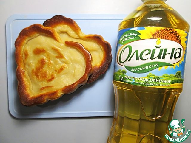 Формы для выпекания размером около 12 см смазываем растительным маслом и ставим в разогретую до 180 градусов Цельсия духовку. В горячие формы выливаем по четверти теста и выпекаем до зарумянивания.
