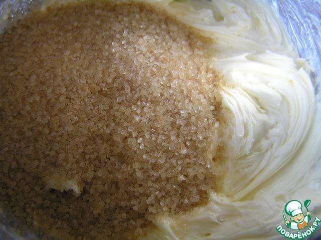 Масло комнатной температуры взбить до кремообразного состояния, добавить сахар.