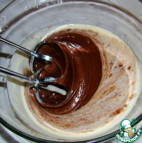 Вливаем шоколадно-масляную смесь в яичную не переставая взбивать миксером.