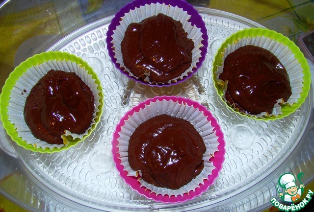 Я беру бумажные формы, вкладываю их в силиконовые, наполняю на 2/3 тестом и отправляю в пароварку. Из этого количества я получаю 8 штучек брауни.
