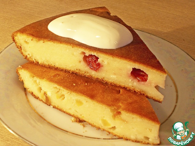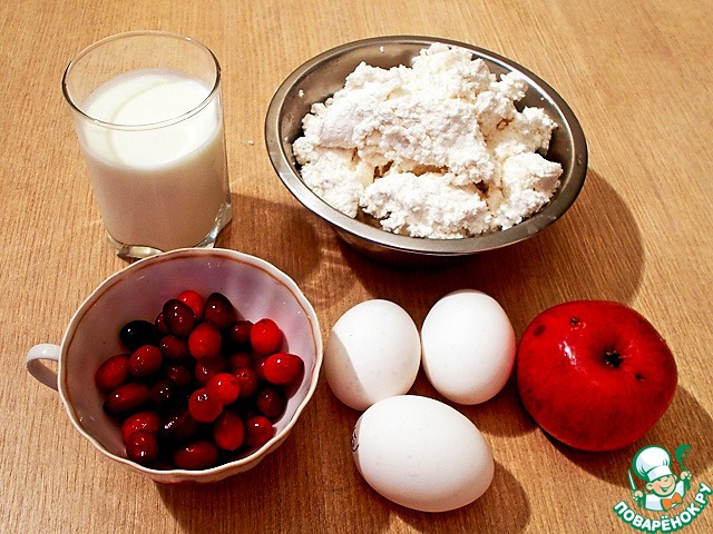 Творожный пирог с клюквой и яблоками