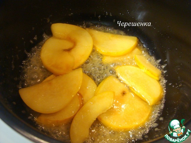 Рецепт "Творожно-шоколадная запеканка с карамельной айвой":
