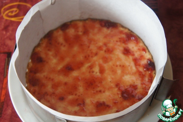 Затем смазать джемом и поставить вокруг коржа бортик от формы.